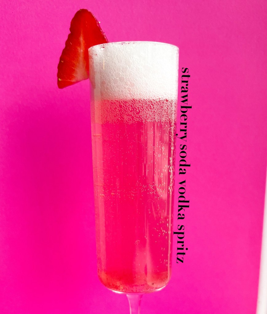 - Assemble drink. Add ice to shaker. Add .5 ounces of simple strawberry syrup & 1.5 ounces of vodka and shake.