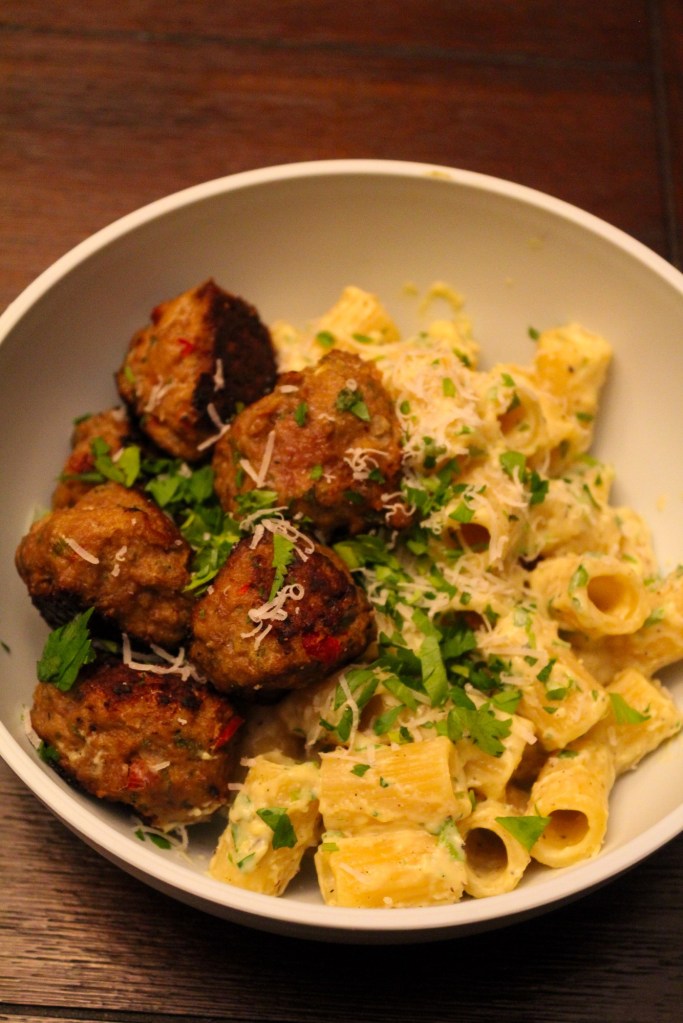 ‘Avgolemono’ Rigatoni & Spicy Rosemary Turkey Meatballs